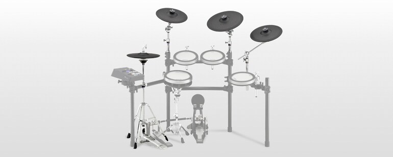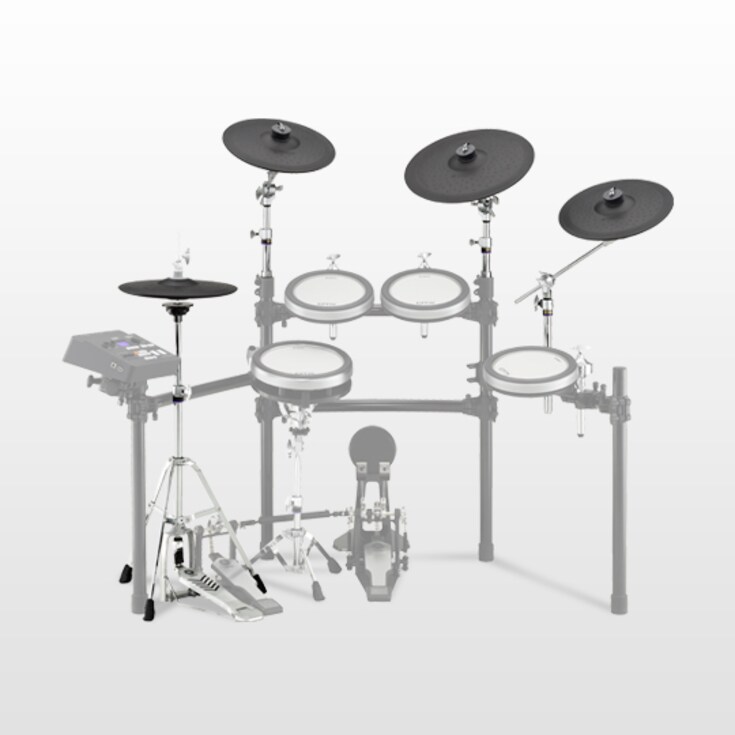 Sada elektronických činelových padů pro rozšíření vašich DTX bicích, která se skládá z 2 crash padů, 1 ride padu – oba druhy padů s příslušnými držáky – a pak je zde také hi-hat pad se stojanem.