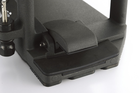 Pogumovaný povrch koncovky spojovací tyče zabraňuje odpojení šlapky a základního rámu.