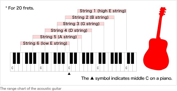 Six strings, each with a higher pitch The Structure of the Acoustic Guitar