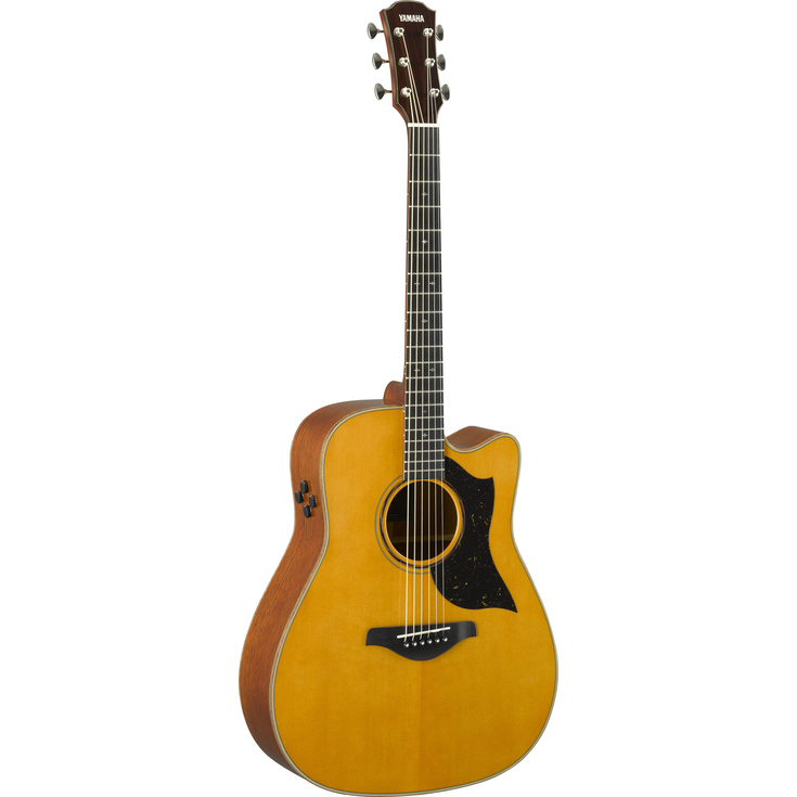 A1M, tradiční westernová kytara s výřezem, se vyznačuje vrchní deskou z masivního smrku sitka s vroubkovaným žebrováním a zadní deskou a luby z mahagonu. Originální piezo snímač Yamaha SRT zajišťuje solidní výkon při zapojení.