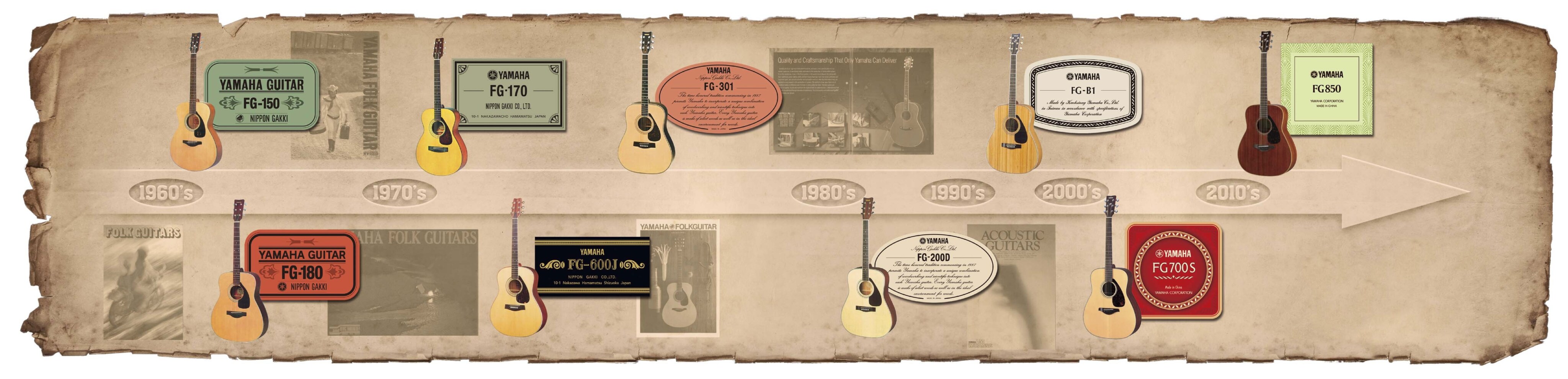 Historie FG série Yamaha začala v roce 1966 uvedením modelů FG180 a FG150. Po padesáti letech po tomto uvedení jsme vyvinuli a vytvořili několik generací sérií FG – a všechny udělaly z nástrojů FG ideálními akustikami pro současné hráče. Celkově bylo od roku 1966 uvedeno více jak 200 FG modelů.