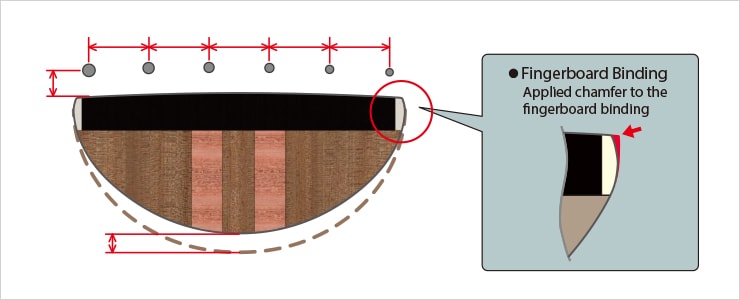 Pět vrstev z mahagonu a palisandru vytvořených se závitnicí na hlavě kytary a dvojcestná výztuha tvoří krk s vynikající odolností a stabilitou. * Modely 26, 36, 56 jsou vybaveny závitnicí na hlavě kytary.
