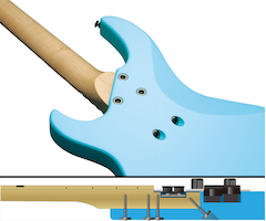 Miter bolting holds the neck closer and tighter to the body fusing these two separate components into one. Compared to a conventional bolt-on joint, miter bolting efficiently transfers string vibration throughout the body with little loss. This delivers greater body resonance making each note come alive.