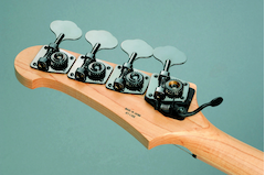 The Hipshot tuner drops the "E" string down a whole step to "D" with the flick is a lever. A gear adjustment provides precision tuning.