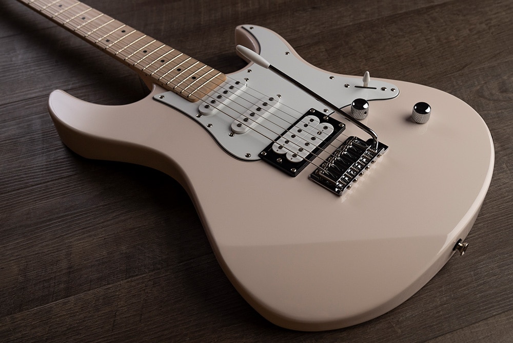 Model Yamaha Pacifica112V s javorovým hmatníkem a černým pickguardem.