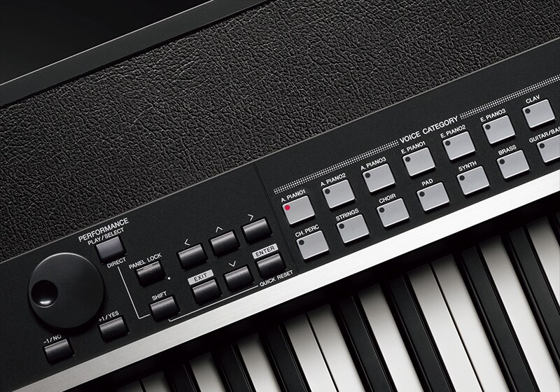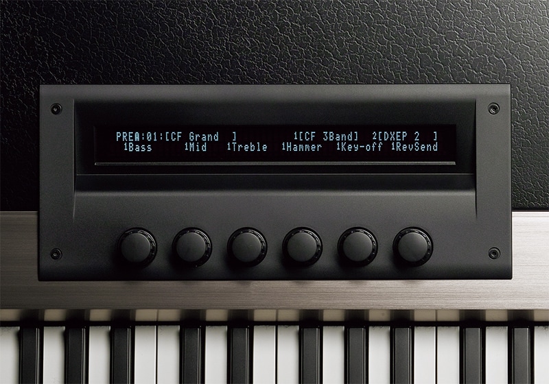 Jedním z našich cílů při navrhování modelu CP1 bylo umožnit klavíristům manipulovat se zvuky elektrických pian pomocí řady efektů a dalších parametrů přímo během vystoupení. Ovládací panel tedy obsahuje snadno čitelný displej, spolu s ovladači, které lze použít k úpravě zvuků v reálném čase.