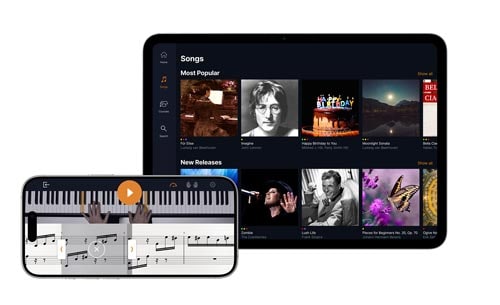 Flowkey je celosvětově oblíbená aplikace k výuce hry na klavír. I jako začátečník dokážete na svůj akustické klavír, digitální klavír nebo keyboard zahrát mnoho písní již po krátké době. Klavírní aplikace flowkey je ideálním společníkem při zahájení výuky hry na klavír. Vyberte si z velkého množství písní své oblíbené a začněte s nimi – nebo klasicky využijte širokou nabídku existujících výukových materiálů.