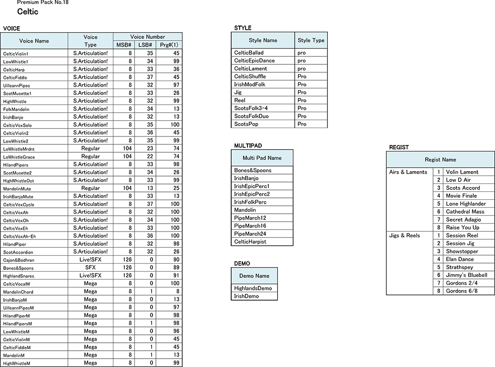 Od tradiční irské a skotské lidové hudby až po filmové soundtracky zapojující keltské vlivy - to vše pokrývá balíček Celtic. Nabízí zbrusu novou paletu vysoce kvalitních zvuků, včetně píšťal, fléten, houslí a akordeonů, spolu s novými styly, Multi Pady a registračními paměťmi. Tento keltský balíček je výkonným doplňkem, ať už hrajete na klávesy doma nebo na pódiu.