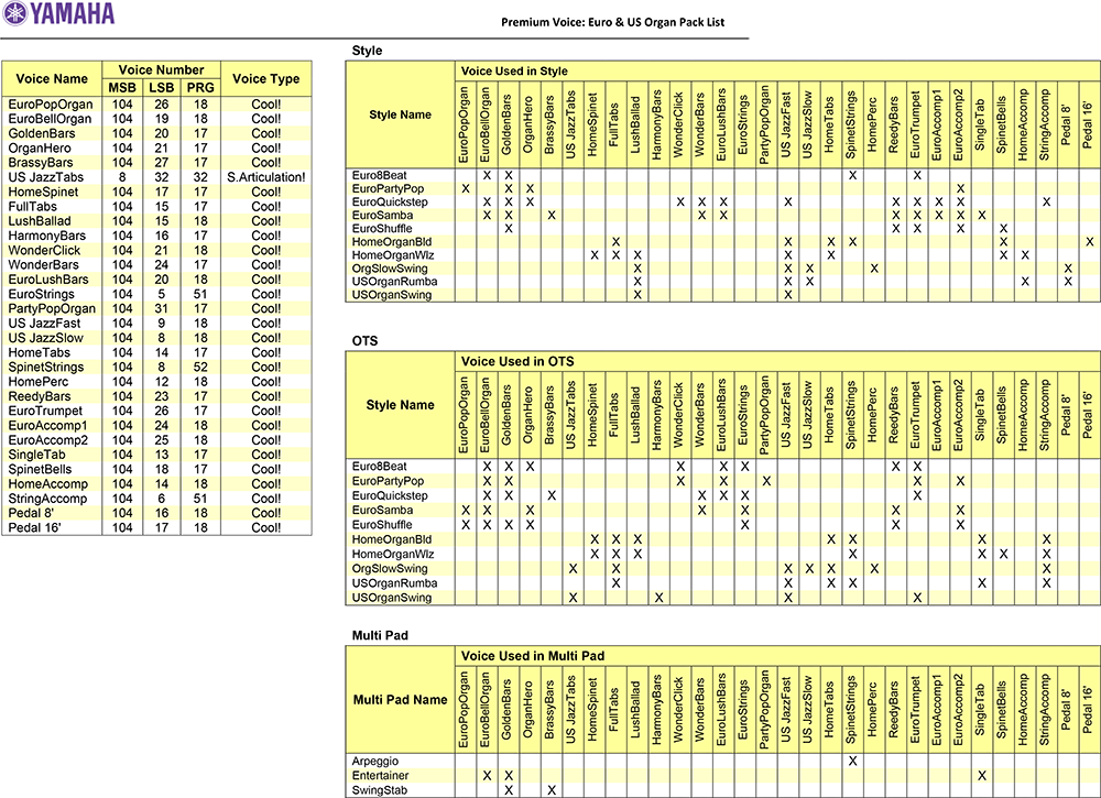 Styly, včetně: Euro 8Beat | Euro Party Pop | Euro Quickstep | Home Organ Ballad | US Organ Rumba | a další!