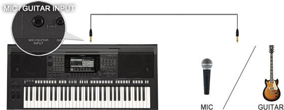 Model PSR-S770 je vybaven vstupem pro mikrofon/kytaru, který vám umožňuje snadno přidat zpěv nebo kytaru k vašim živým vystoupením. Stačí připojit mikrofon a můžete dokonce jednoduše na zpěv přiřadit některý z vestavěných efektů. Nebo připojte kytaru a nastavte si různé parametry podle svých požadavků a napodobte zvuk vašich oblíbených umělců, nebo si vytvořte svůj vlastní originální zvuk!