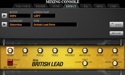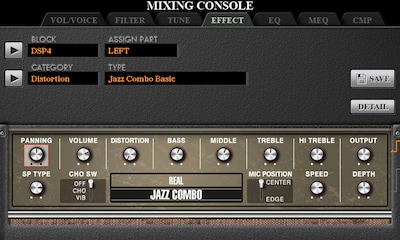 Yamaha PSR-S975 nabízí pokročilé efekty Real Distortion a Real Reverb z proslulého Tyrosu 5 poskytující věrný a přirozený zvuk, který ve své kategorii nemá konkurenci. Přes atraktivní a intuitivní grafické uživatelské rozhraní lze snadno přidávat a upravovat různé parametry efektů, stejně jako byste ovládali skutečné hardwarové efekty a zesilovače v reálném čase. Pomocí technologie Virtual Circuitry Modeling (VCM) od Yamahy jsou zde velmi věrně simulovány efekty jako phaser, Wah, kompresory apod. až do úrovně jednotlivých součástek elektrických obvodů.