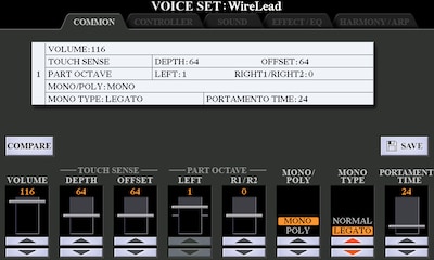 Nově byly přidány funkce a efekty Half bar fill-in, Mono legato, které dokáží dále obohatit vaši hru. Nastavení ovladačů Live Control lze rychle vyvolat z registrační paměti.