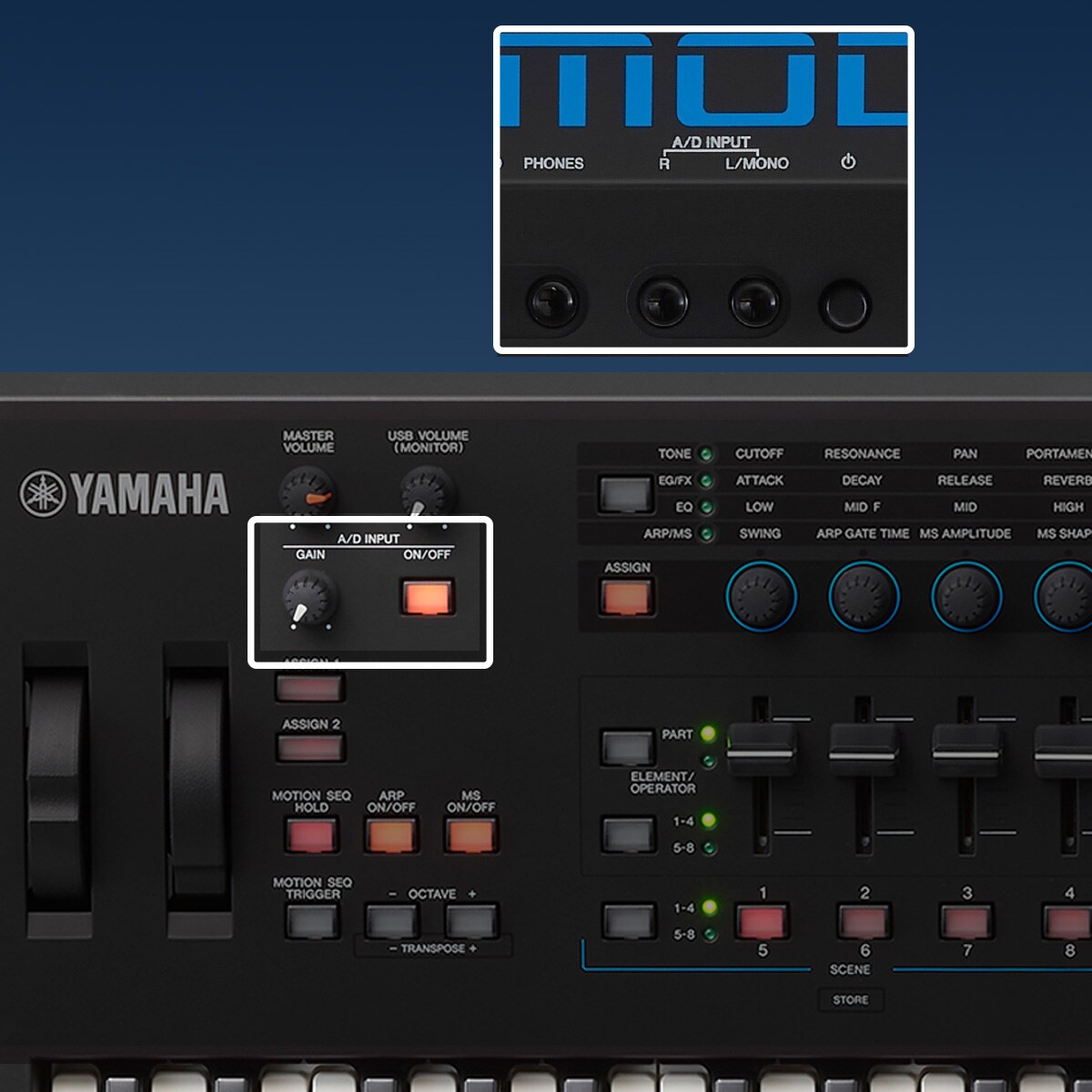 Stereo A/D vstup umožňuje přivést externí zdroje signálu, jako jsou analogové syntezátory, zpěv nebo další nástroje, do systému Motion Control v MODX+. To znamená, že ovládání MODX+ jde mnohem dále než jen na úroveň jednoduchého zpracování vestavěných efektů. Ovládejte jednotlivé parametry fyzickými ovládacími prvky nebo poskytněte MODX+ “neviditelné ruce“ pro práci s využitím Motion Control. Přidejte Vocoder, Envelope Follover a Auto Beat Sync a je to, jako by se A/D vstup v MODX+ stal nástrojem sám o sobě.