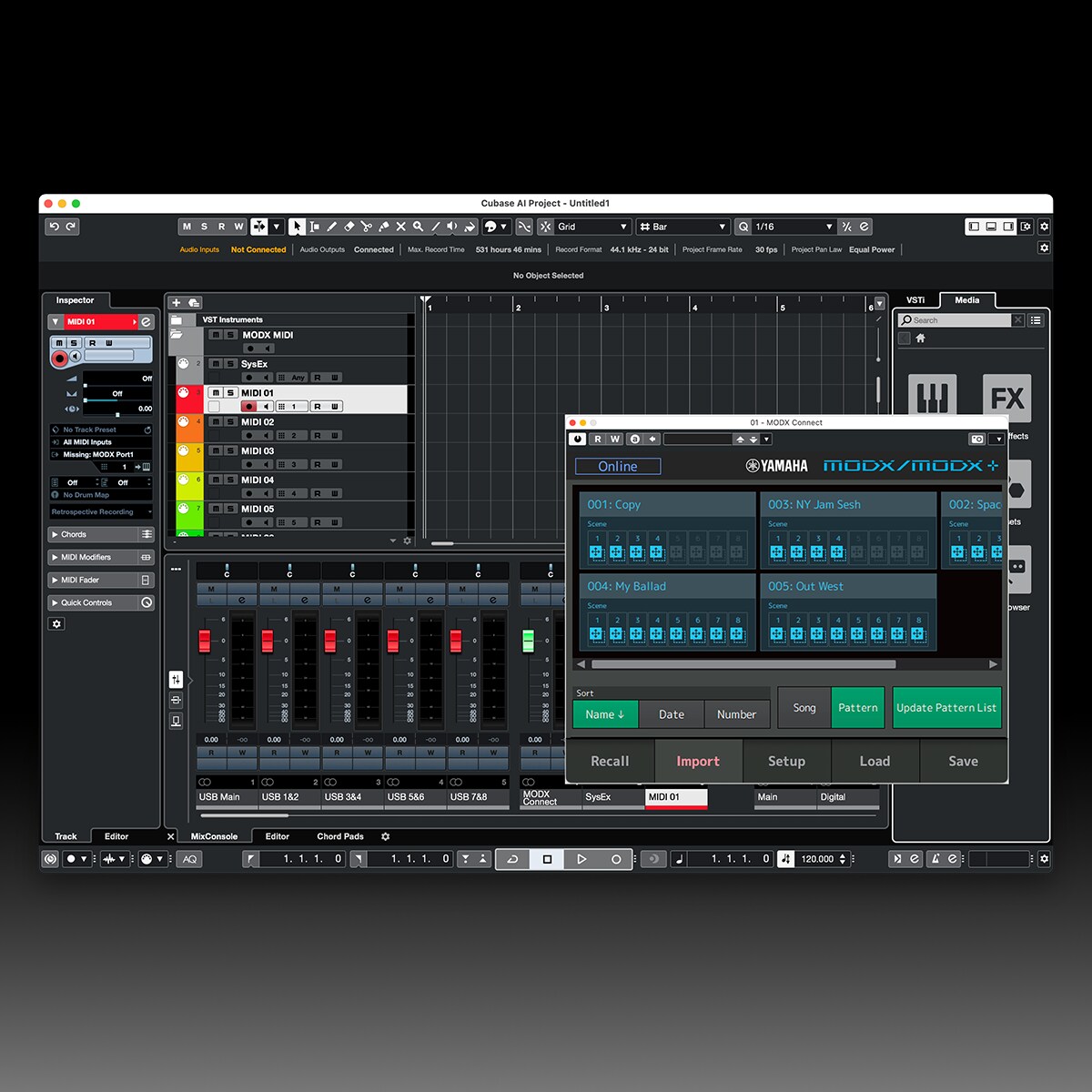 MODX+ Connect, založený na VST3 technologii od Steinbergu, funguje jako VST3 plug-in s programy série Cubase. MODX+ Connect funguje také stejným způsobem jako další VST instrument software, kdy si můžete uložit upravená nastavení pro MODX+, nebo je použít v dalším projektu.