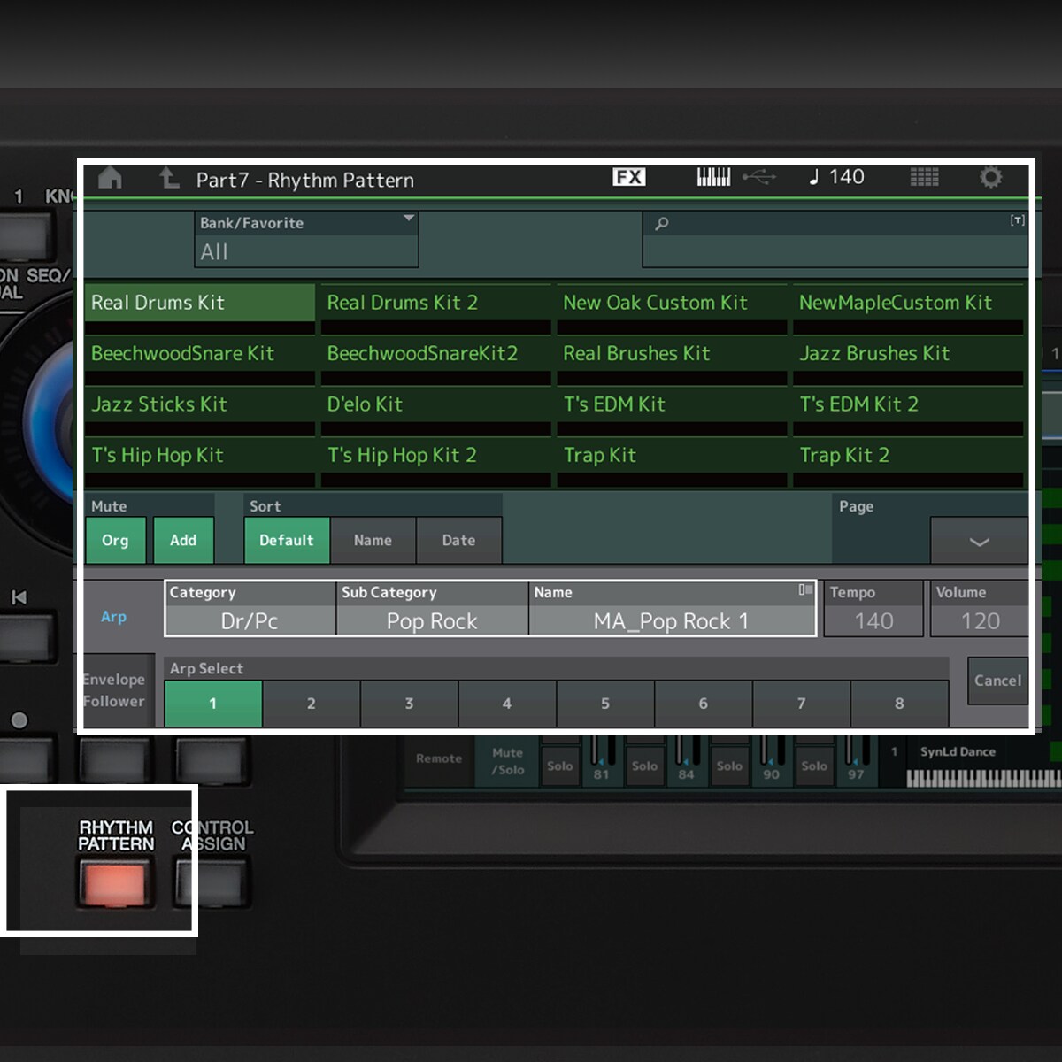 Bubeník má zase zpoždění? Rytmické patterny v MODX+ jsou jako vestavěný bicí automat se snadným přístupem k tisícům patternů pomocí tlačítka na předním ovládacím panelu. Přidejte si rychle rytmus při skládání, cvičení nebo čekání, než se bubeník objeví nebo si sestaví bicí.