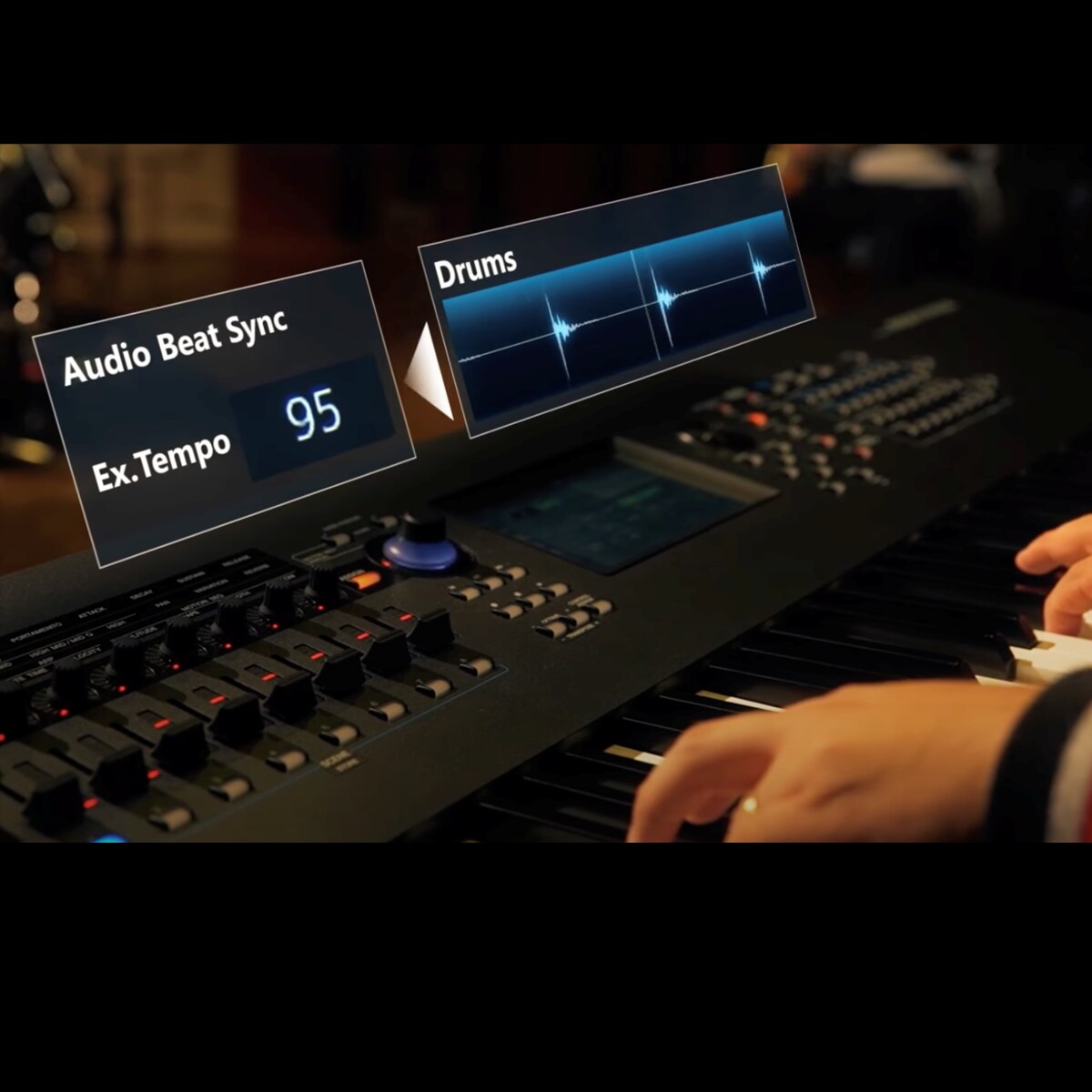 Audio Beat Sync (ABS) detekuje rytmus externího zařízení, jako je elektronická bicí sada, automatický bubeník, nebo audio přehrávač připojený do A/D vstupu a synchronizuje MODX+ apreggiator, Motion Sequencer nebo Song do tempa externího vstupu.