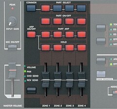 S90 XS/S70 XS má řadu dalších funkcí, které oceníte hlavně při živém hraní – jako například kombinovaný vstupní jack, který umožňuje připojit mikrofon. Jednoduše připojte mikrofon, potočte ovladačem vstupní citlivosti (INPUT GAIN) (přitom sledujte ukazatel vybuzení (PEAK lamp)) a máte nastaveno! Navíc můžete použít ovládací prvky pro jemné nastavení požadované hlasitosti a můžete také obohatit zvuk o efekty reverb a chorus.