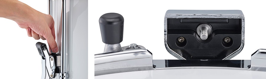 To minimize the possibility of cracking, the lug posts are now made of aluminum rather than plastic. A rubber O-ring that prevents the tension rod from falling when the tube lug bolt is removed takes the place of the nylon nut provided in previous models.