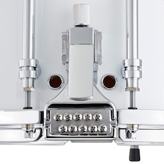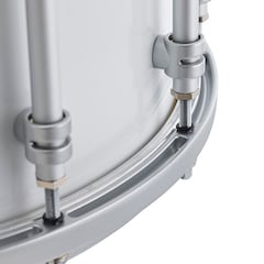 A snare-side aluminum insert ring is standard, preventing shell deformation and maintaining stable pitch even when high-tension tuning is used.