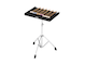 A wide height adjustment range provides a maximum table height that is higher than the top of our concert marimbas for convenient mallet placement.