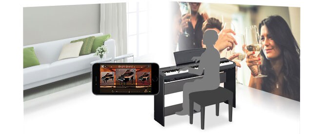 Vestavěné zvuky digitálního piana Yamaha můžete volit pomocí barevných obrázků na displeji iOS zařízení. Aplikace vám umožní přečíst si o charakteristikách jednotlivých zvuků a dá vám tipy pro jejich využití, nabídne vám přehrání demo skladby, abyste si daný zvuk mohli poslechnout a tím vám usnadní výběr optimálního zvuku a objevování nových zvuků, které jste předtím nikdy nepoužili. Ukázkové skladby si můžete poslechnout také přímo v aplikaci. Stáhněte si aplikaci Digital Piano Controller a objevte nový svět.
