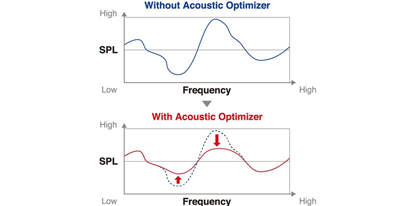 Reproduktory, které jsou součástí těla nástroje, vykazují jev, kdy se zvyšuje hlasitost nástroje díky rezonančním frekvencím materiálu. Instalací akustických optimalizátorů se stejnou rezonanční frekvencí v těle piana dokáže potlačit tyto nežádoucí rezonance. Toto vylepšení zvuku je něco, co bylo možné jen díky důkladné znalosti Yamahy o vnitřních akustických vlastnostech hudebních nástrojů.