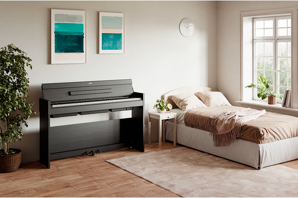 Skříň piana má štíhlý design, který umožňuje nástroje vkusně nainstalovat do libovolné místnosti a vytváří elegantní stylový design, který bez námahy osvěží váš obytný prostor. Navíc zavřený kryt klaviatury poskytuje nástroji plochý nenápadný vzhled.