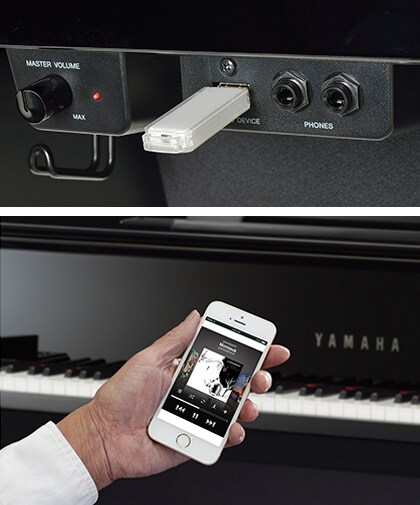 Port USB TO DEVICE vám umožní připojit USB flash disk a využít jej jako vestavěné klavírní nahrávací studio. Svá vystoupení si můžete uložit přímo na USB flash disk jako audio skladby. Tyto skladby jsou uložené ve WAV formátu, takže si je můžete poslechnout přes vestavěný ozvučovací systém v nástroji, nebo je tradičně přehrávat na počítači, přesunout je do přenosného hudebního přehrávače nebo je nahrát na internet a sdílet je s přáteli online.