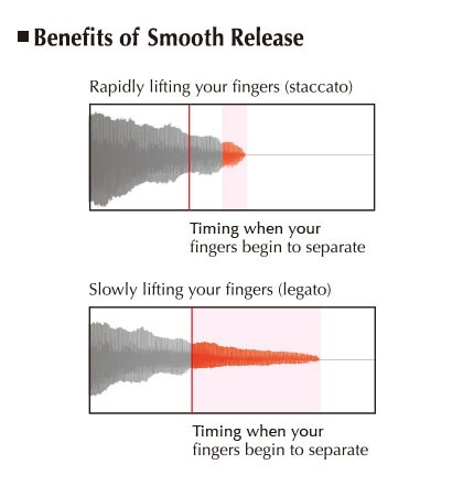 Díky technologii Yamaha Smooth Release nabízí Clavinova řízný tón, který můžete slyšet při hře staccato, stejně jako přeznívající tón při pomalém uvolňování kláves. To umožňuje jemné odstupňování odezvy na úhoz klavíristy.