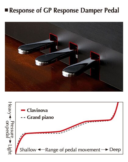 Damper pedál s technologií GP Response nabízí křivku odporu srovnatelnou s pedálem u akustického křídla, kdy ze začátku je odpor pedálu menší a odpor roste nelineárně s hloubkou stisku pedálu. To umožňuje hráčům, aby si zvykli na nuance při jemné práci s pedálem.