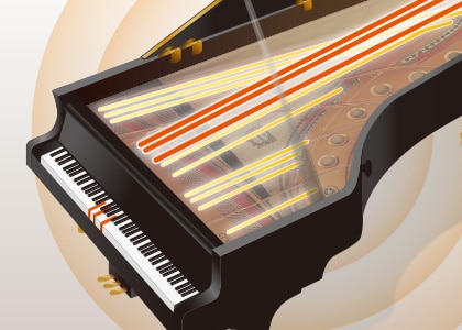 V klavíru rezonují struny a zvuk v celém těle nástroje a vytváří tak bohatý dozvuk, který posluchače zcela obklopí. Při hře nerezonují pouze struny pod klávesami, na které právě hrajte, ale jako reakce na ně se rozezní se také další struny. To je z důvodů, proč je zvuk klavíru tak komplexní a bohatý.