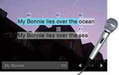 Můžete si užít karaoke za doprovodu písní uložených přímo ve vaší Clavinově nebo stažených z internetu. Text písně se zobrazuje na displeji* a jednotlivá slova plynule mění barvu, jak píseň postupuje dál, a tím vám napovídají, kdy co máte zpívat. Nechte zobrazovat text na velké televizní obrazovce, aby se každý mohl přidat ke zpěvu a vaše party se hned rozjede. * Pouze pokud jsou ve skladbě vepsány textová data.