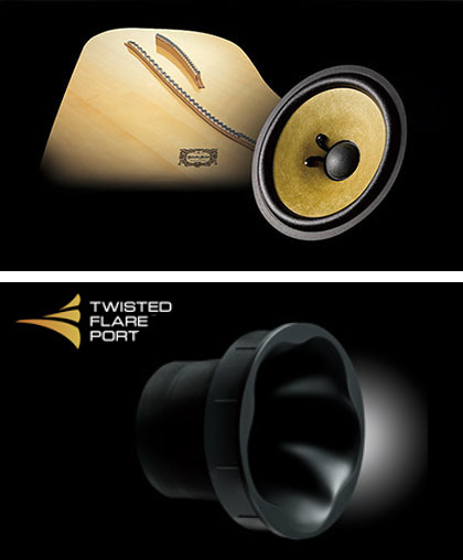 Twisted Flare Port je nová technologie od Yamahy, která nabízí jasnější basy. Zvlněný a lehce zakroucený tvar rovnoměrně rozptýlí proud vzduchu z portu. V porovnání s konvenčním portem dokáže Twisted Flare Port redukovat hluk vzduchových turbulencí, což přispívá k jasné a přesné reprodukci nízkých frekvencí.