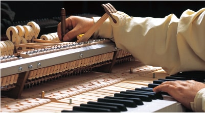 The frame in a piano must be able to withstand a total string tension in excess of twenty tons; not only does the frame work to support the string tension, but it has a profound effect on the instrument’s sound. Yamaha makes its own frames, relying on a method of casting referred to as “vacuum process,” the world’s first such technique developed over many years in creating some of the best piano frames. During this time we have built up a storehouse of knowledge on factors such as the manner in which controlling the temperature and composition of casting, and even the coating used on the frame itself, affects the acoustic characteristics of the piano. This is a major reason that Yamaha is able to ensure reliable quality when crafting our pianos.