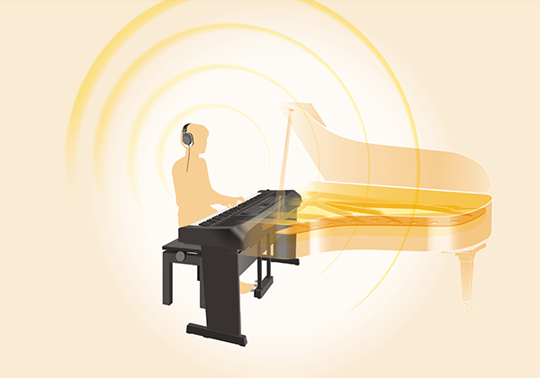 Když si nasadíte sluchátka, tak díky funkci Stereophonic Optimizer si můžete užít prostorový zvuk, který uslyšíte, pokud si sednete za akustický klavír. Díky funkci Stereophonic Optimizer se zdá, že zvuky vzorkované z akustických pian* vycházejí přímo z těla nástroje. Toto poskytuje pohodlný přirozený požitek ze hry, který odstraňuje nevýhody hraní s nasazenými sluchátky.