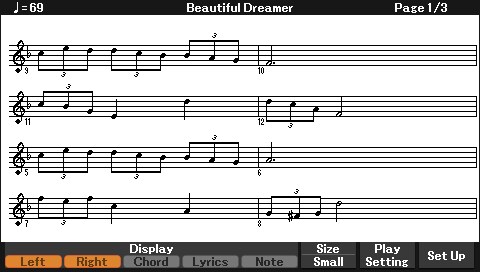 Výukové možnosti jsou zábavným způsobem, jak se naučit a zdokonalit skladby a písně pomocí notace zobrazené na displeji. Pokud například cvičíte part pro pravou ruku, tak přehrávání partu pro levou ruku a dalších partů bude čekat, dokud nezahrajete správný tón. Toto vám umožní plynule cvičit melodie a fráze — i když jste začátečníci.