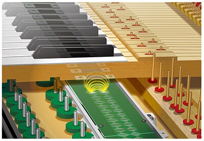 Yamaha speciálně pro kompaktní pianina vyvinula nový transduktor. Tento transduktor převádí digitální zvukové informace na vibrace, které přenáší na ozvučnou desku, která zase vibruje a k tomu připojuje rezonanci strun, aby se celé piano proměnilo v rezonátor. Zdroje digitálního zvuku lze použít k produkci přirozeného akustického zvuku z těla piana, díky čemuž lze ovládat i hlasitost při hraní, bez nutnosti používat sluchátka.