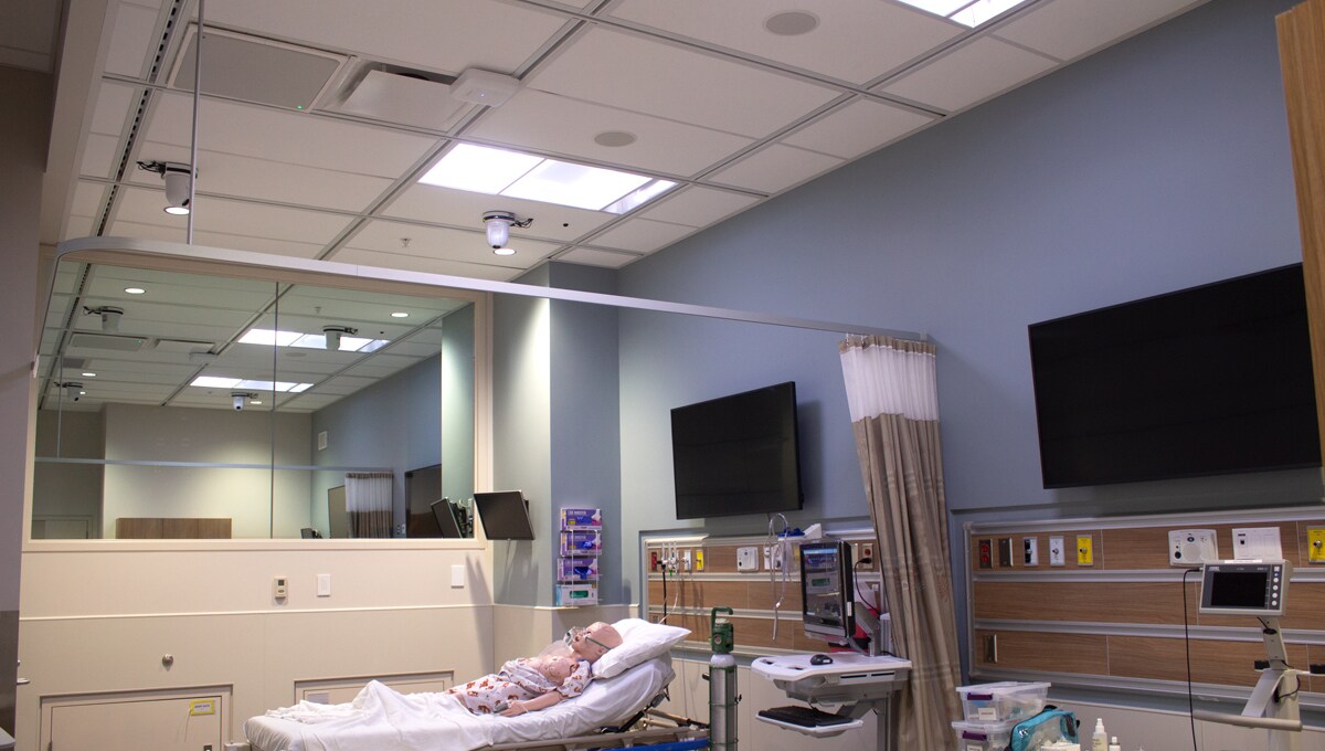 The simulation room technical staff installed the ceiling microphone in the middle of the room for optimal room coverage. As to be expected, installation efforts were minimal, and the mic’s functionality supported many of the current technology and processes already in place. For example, the RM-CG’s software agnosticism allowed for output from the center’s existing Biamp system, requiring minimal programming. The RM-CG’s dynamic beams also allow for a variety of room layouts. This flexibility is necessary, as the setup of the simulation room changes frequently, from a NICU unit to an operating room and anything in between. All technology is run from the control room, so the trainers and students can focus on the incredibly important medical tasks at hand.