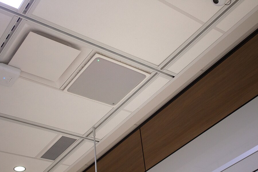 In one of NAIT’s large simulation rooms, this crystal-clear audio comes from Yamaha's RM-CG Ceiling Microphone.
