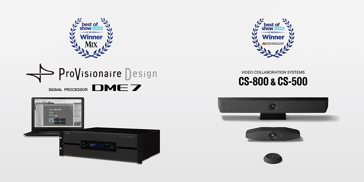 Yamaha s hrdostí oznamuje, že získala na Integrated Systems Europe (ISE) 2023 dvě ocenění Best of Show Award za svůj nový DME7 digitální signálový procesor/ProVisionaire Design software a systém video spolupráce CS-800/CS-500.