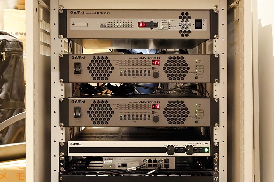 Systém reprodukce hudby v showroomu také využívá produkty Yamaha.