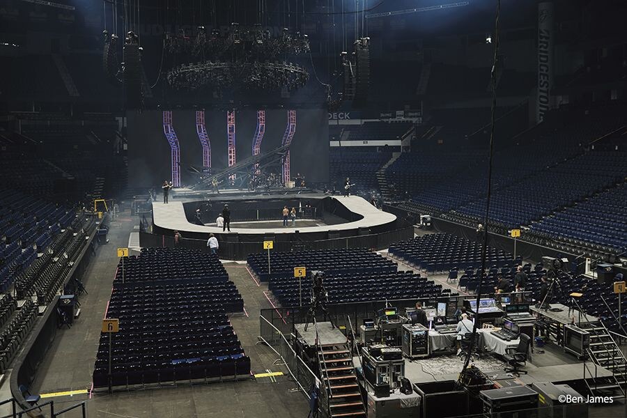 Toto turné představilo obzvláště složitý scénický design: podkovovitý výstup, který obklopuje jeviště kolem publika. To umožňuje intimní vystoupení, ale přináší také vážné zvukové výzvy. „Tyto rozhovory začaly už několik měsíců předem,“ vzpomíná Loy. „Opravdu jsme chtěli přijít na to, jak zajistit, aby vokály, které jsou nejdůležitějším prvkem show, zněly čistě a jasně, aniž by bylo nutné použít spoustu produktů PSE (primární zdroj zesilovače) nebo je tak agresivně zesilovat, že by nezbyly žádné vysoké frekvence.“