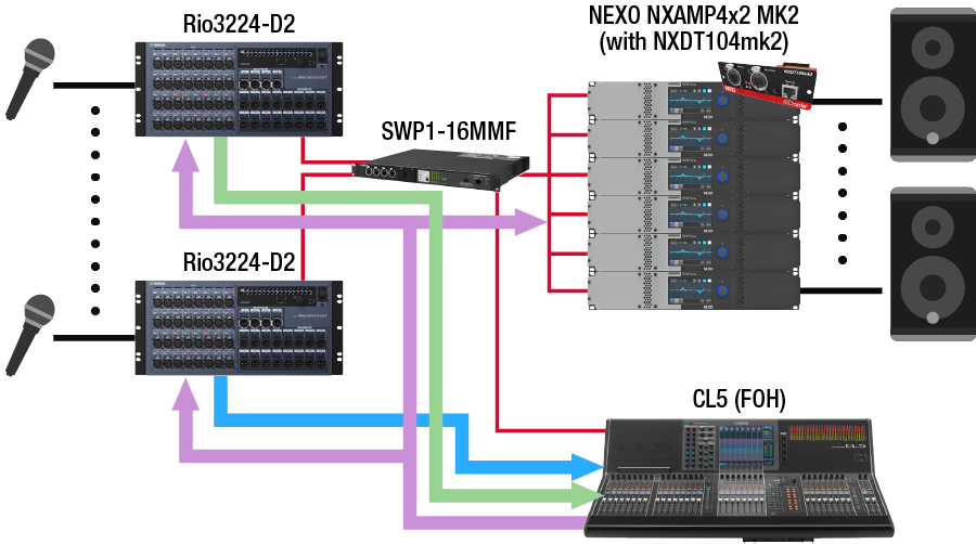 Jediné používané analogové kabely jsou mikrofonní a reproduktorové kabely, takže se snímaný šum snižuje na minimum pro vynikající celkovou kvalitu zvuku v systémech libovolného měřítka.