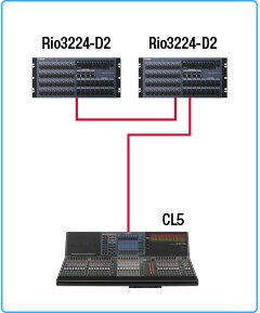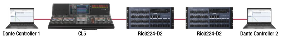 Dante moduly v CL, QL, R sériích a v některých dalších zařízeních mají interní přepínače, které umožňují řetězené propojení. Přestože jsou zařízení fyzicky propojená do řetězce, tak logická topologie sítě je hvězdicová.