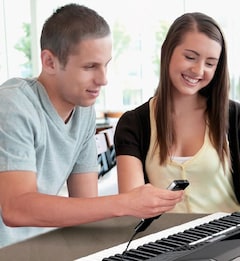 There is no difficult setup, simply connect i-UX1 between iPhone/iPod touch/iPad and your instrument such as portable keyboard, electronic drum kit and synthesizer, before launching the Apps from your iPhone/iPod touch/iPad.