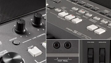 PSR-S670 nabízí dva přiřaditelné ovladače, modulační kolečko a dva programovatelné vstupy pro pedály – díky tomu máte plnou kontrolu nad zvuky, styly, efekty a dalšími funkcemi přímo při živé hře.