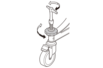 A swivel prevention function has been added to the caster locks. Furthermore, the YCH7018 now features height-adjustable casters. If the chime tubes are not properly centered in the damper they can touch the damper felt, reducing sustain and deadening the tone. Adjustable-height casters make it easy to level the instrument so that the chime tubes hang away from the damper felt.