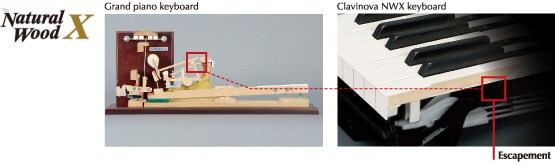 Klaviatura NWX je vybavena také mechanikou s escapementem, která reprodukuje jemné lupnutí ve spodní části stisku klávesy a stejně jako u akustického klavíru je tento efekt znatelnější u lehkých kláves ve vyšší části rozsahu nástroje.