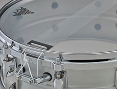 After repeated evaluations of our design by Steve Gadd, we have created a groundbreaking snare drum.To date, Yamaha’s snare drums have traditionally had the metal center bead on the interior of the drum. However, we have taken the step of fixing the center bead to the outside of the drum to produces a more open sound than our conventional drums, for crisp, articulate performance.